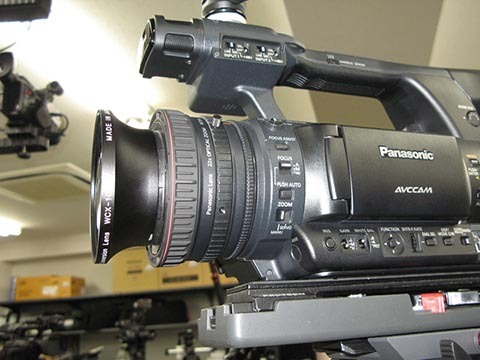 さらに、最短撮影距離が意外と長くて寄れなかったりで、無敵ともいえる小型ビデオカメラなんですが、ウイークポイントがあるんですね。こういう場合は以前からワイドコンバーターレンズを装着していましたが、以前のようにカメラメーカーが周辺機器として用意しなくなってきて、サードパーティ製の製品の中から選ばざるを得ない状況になってきています。こうしたレンズを選択する上で注意したいのは、ズーム全域で使えないワイドコンバーターレンズがあったり、周辺がケラレれたり、倍率が規格通り出なかったりする製品があることです。業務用ビデオの業界ではワイドコンバーターレンズといえばズーム全域で使えるというのが常識ですが、業界外のメーカーの製品には注意したほうがいいかもしれません。おおむね、対応カメラが明記されている製品は安心ですが、装着レンズのフィルター径しか記述がない製品は、実際に装着してみないとわからないことが多いです。