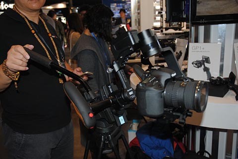 ケンコープロフェショナルイメージングさんは中国のWenPodという会社のスタビライザーも新製品として出品していました。写真はGoPro用のGP1+というモデルでジョイスティックにより上下方向にカメラの向きを任意で変えることが可能です。