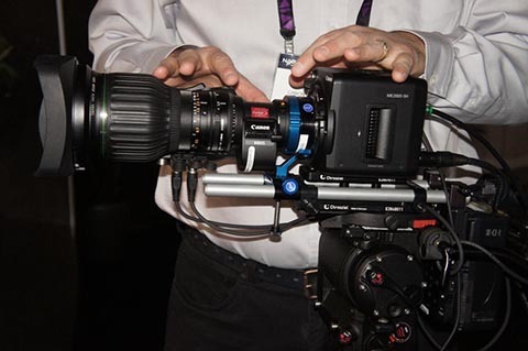 キヤノンさんの8KカメラCINEMA EOS SYSTEM 8Kは、Canon EXPO 2015 Tokyoでも出展されていたもので、後部にOdyssey7Qレコーダーが4つもビルトインされていました。