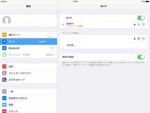 OSMOなどをイメージしていただくと分かりやすいかと思いますが、本体とタブレットはWi-Fiで動作させます。またタブレット上でSparkのWi-Fiを確認してもパスワードを求められますが、よくDJI製品をお使いの方こそが一番戸惑うのが、パスワードが「12341234」ではないこと!
