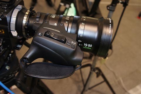 フジノンZK4.7×19。放送番組制作を念頭に設計された標準ズームレンズで、ENGカメラで使われるようなグリップがあってテレビすたいるで使用することができます。