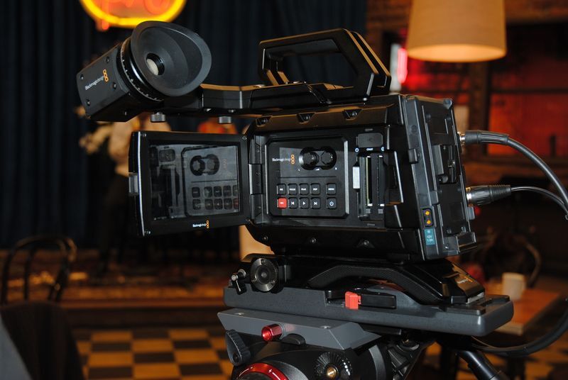 URSA MiniはURSAよりかなり小型で私でも手持ち撮影できそうです。ただ、オプションのハンドルとか肩パット、VF、バッテリーなどを付けて写真のようにすると3kgをかるくオーバーしちゃいます。