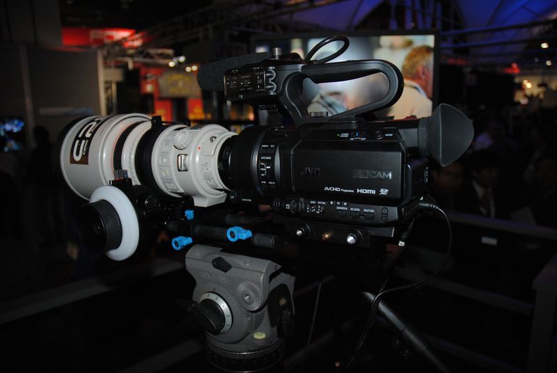 JVCのレンズ交換式4KカメラレコーダーGY‐LS300。バリアブルスキャンマッピング技術を搭載していてレンズのイメージサイズに合わせてセンサーのスキャンサイスを調節可能ってことですが、技術に詳しいおじさまによるとマイクロフォーサーズで規定しているよりSuper 35mmセンサーのほうがわずかにサイズが大きいそうでその対策だろうとのことでした。