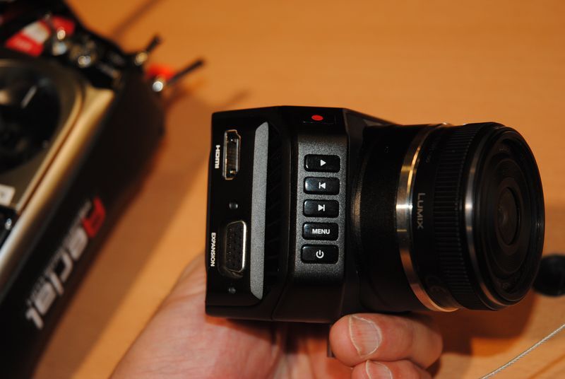 Blackmagic Micro Cinema Camera。RAWおよびProResでSDメモリーに記録。マウントはマイクロフォーサーズなのでレンズは色々選べますね。ディスプレーはついてません。