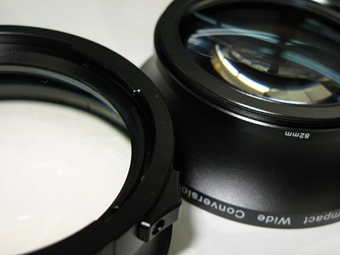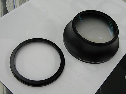 さて、前置きが長くなってしまいましたが、今回ZunowのワイドコンバーターWCX-100&WCX-200がお店に来ましたので、こうしたことを踏まえたうえでチェックしてみましょう。いずれも光学系は同じで装着方式が異なるだけです。WCX-100はレンズのフィルターネジで装着するタイプでステップダウンリングで82mmまたは72mm径のレンズに装着することが可能です。