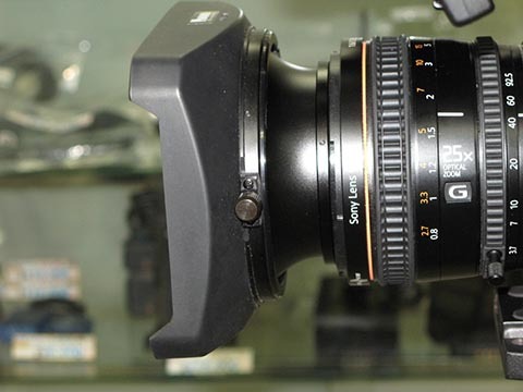 WCX-200はバヨネットに装着になっていて、ソニーの同系シリーズに対応します。いずれのレンズにも角形ラバーフードとポーチがオプションで用意されています。倍率は0.8倍で、25倍以上のズーム比のレンズにも対応とうたっていますので、25倍ズームのPXW-X160に装着してズーム全域での画質などを見てみました。