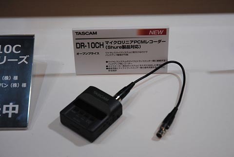 マイクロリニアPCMレコーダーTASCAM DR-10CH。ワイヤレスマイクシステムのバックアップ録音用としてすでにソニーやRAMSA、ゼンハイザー用があったんですがSHUREのワイヤレスに対応したものです。