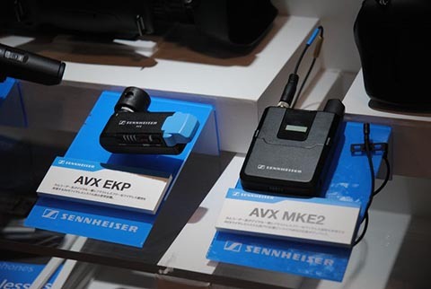 ゼンハイザーさんデジタルワイヤレスマイクAVXシリーズ。1.9GHz帯を使用するDECTという通信方式を採用しており、Wi-FiやBluetoothによる干渉が少ないそうです。写真左側が受信、右が送信機です。