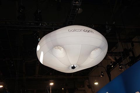 バルーンカメラですが、プロペラが4つ搭載されていて、飛行船みたいに移動したり1か所に静止することができるようになっています。イベントなどで使うことも想定されていて、バルーン内部に照明を入れたり、プロジェクターを入れて文字や図形をバルーンに投影できるようになっています。