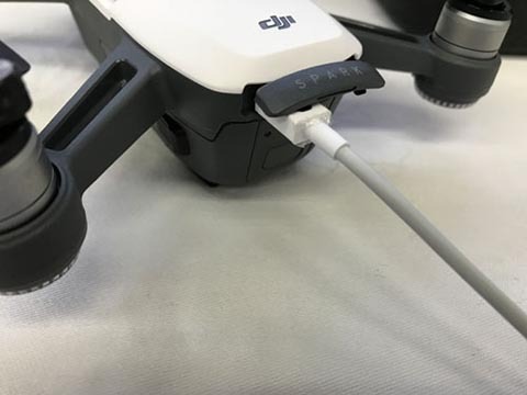 本体充電の際は後ろのSPARKの文字が書かれている蓋を開けてください