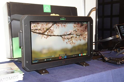 レンズ以外ではATOMOSさんがSUMOを国内初公開していました。SUMOはSHOGUN INFERNOを基に画面のサイズを19型の大きな画面にして、撮影現場でのフォーカス合わせなどを容易に行えるようにしたもので、ドラマやデジタルシネマでの現場での使用を主な用途にしているようです。このサイズなら現場で撮影カットのプレビューなんかにも使えますね。