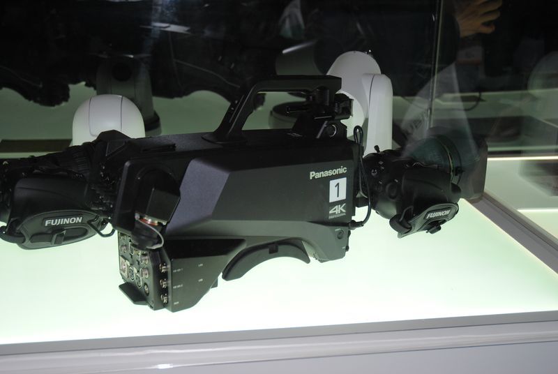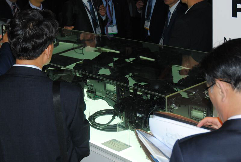 ソニーは今回あまり多くの新製品を出していません。すでに4KのカメラもHDのカメラも出し尽くしてしまったということでしょうか。それでも、4K/HD対応スタジオ&中継カメラHDC-4300とPXW-X180、PXW-X320、PXW-X200、PXW-X500を4G/LTEやWi-Fiネットワーク対応にするアップデートのほか、4KメモリープレーヤーPMW-PZ1が新製品として出展されています。HDC-4300は昨年まで各社から発売されていたカメラと違って3版式のB4マウントのカメラです。今までのHDカメラ用のレンズが使えるようにということですが、キヤノンもフジノンも今回4K対応のB4マウントレンズを出しており、スタジオ撮影のドラマやスポーツや音楽イベントでは画質的に4K対応のレンズが必要ということのようです。CCUやVFなどセットで約1,400万円もしますので、ウチのお店に置くようなカメラではないですね。完全にスタジオや中継の設備の一部といった感じです。