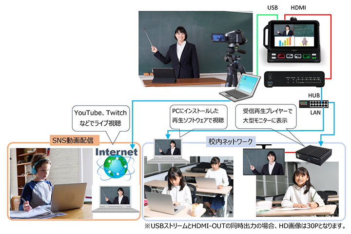 同時動作可能な機能は各種機能の設定によって異なります。それぞれの機能は上限値まで設定できるようになっていますが、全ての機能を上限値に設定して使用できるわけではありません。各種機能をお使いいただく場合、本機のCPUの使用率が平均80%程度に収まるように設定してお使いください。高いCPU負荷率に設定して使用すると、配信や録画が正しく動作できない場合があります。