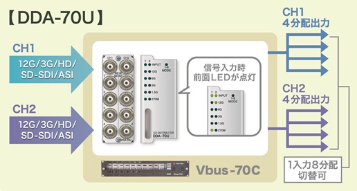 【DDA-70U】 VIDEOTRON 12G対応 SDI信号分配器