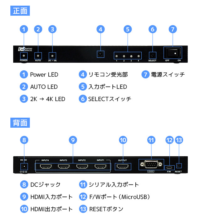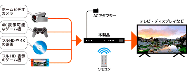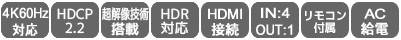【REX-HDSW41-4K】 ラトックシステム 4K60Hz/HDCP2.2対応 4入力1出力 HDMI切替器