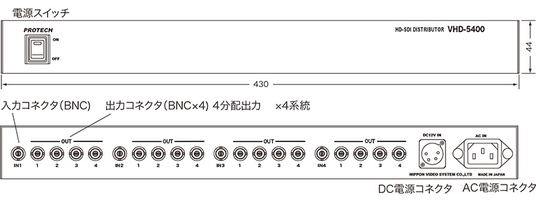 【VHD-5400】 PROTECH 4K対応 1入力4分配×4系統 12G-SDI分配器