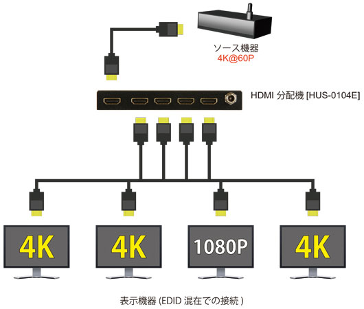【HUS-0104E】 ADTECHNO 4K対応 HDMI 4分配器