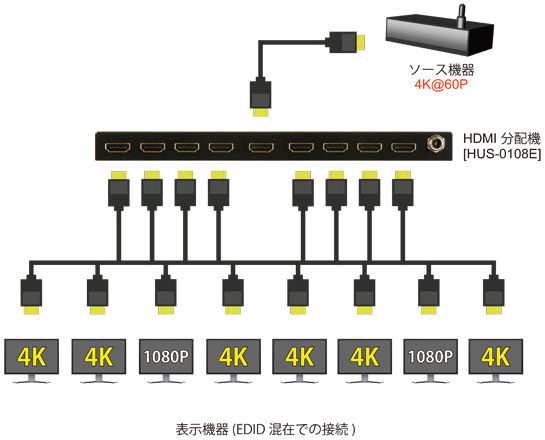 【HUS-0108E】 ADTECHNO 4K対応 HDMI 8分配器