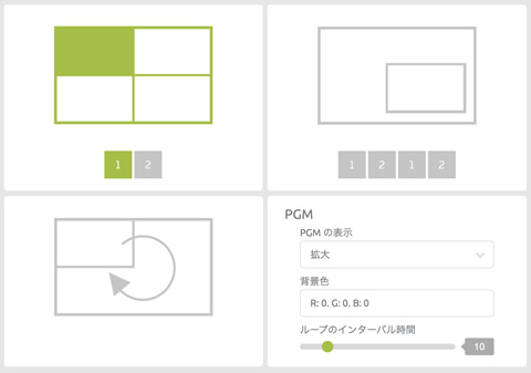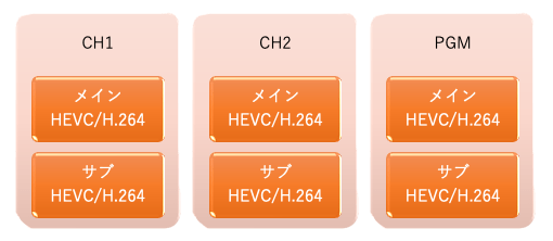 同時動作可能な機能は各種機能の設定によって異なります。それぞれの機能は上限値まで設定できるようになっていますが、全ての機能を上限値に設定して使用できるわけではありません。各種機能をお使いいただく場合、本機のCPUの使用率が平均80%程度に収まるように設定してお使いください。高いCPU負荷率に設定して使用すると、配信や録画が正しく動作できない場合があります。